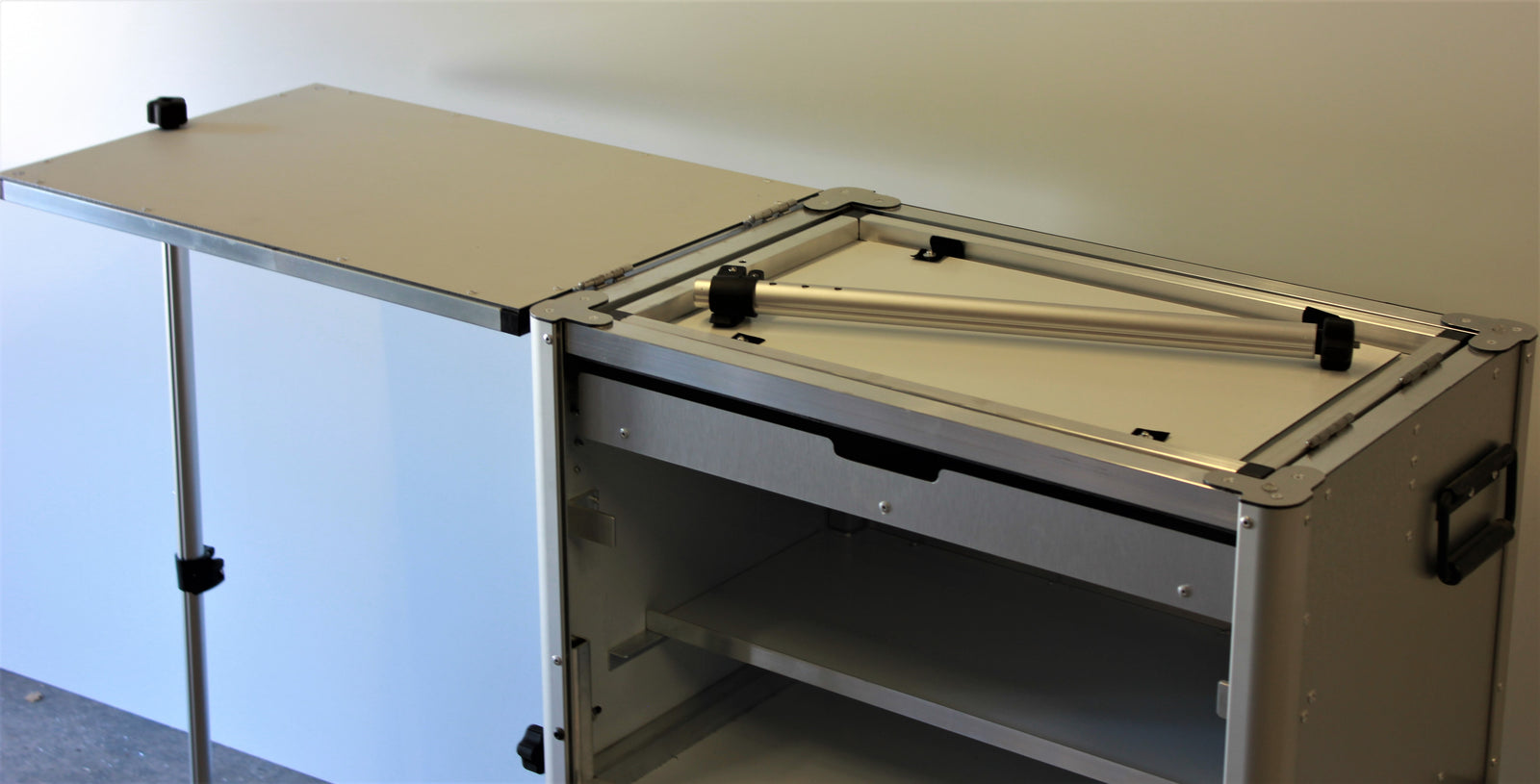 Outside the box;The Camp Kitchen features our proprietary leg and table system, turning your box into a full on Outdoor Kitchen with over 60” of sturdy table surface, and a 300 pound weight capacity!